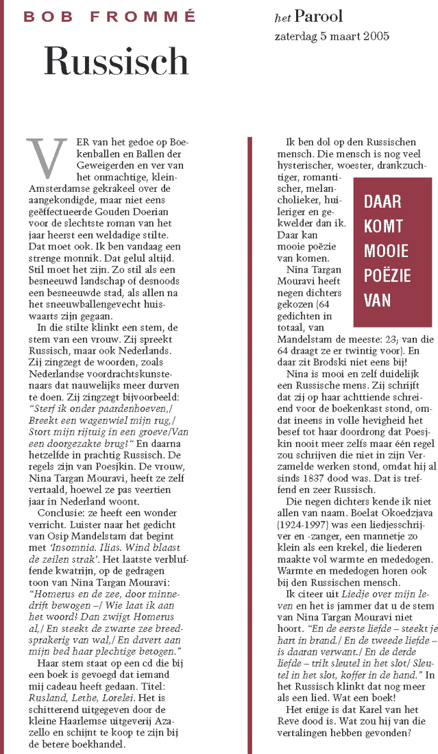 In deze tweetalige editie geeft de vertaalster Nina Targan Mouravi
